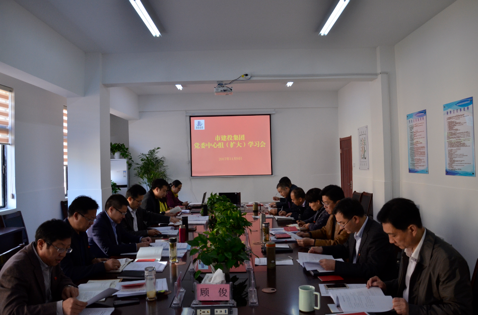 2017年11月9日上午,市建投集团在四楼会议室召开党委中心组(扩大)学习会议,会上学习中国共产党党章(2017版)、党的十九大报告、以及省市在宣传贯彻党的十九大精神大会上的讲话精神。集团公司领导、各直属党组织书记、党委办公室、党委组织部、纪检监察审计部负责人参加会议。