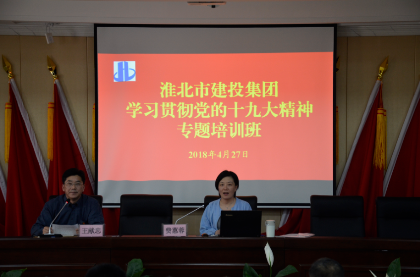 为深入学习贯彻党的十九大精神,4月27日下午,市建投集团在五楼会议室举办党的十九大精神专题培训班。淮北市委党校校委委员、法学与管理教研室主任费蕙蓉教授为淮北市建投集团广大党员干部专题解读了习近平新时代中国特色社会主义思想和党的十九大精神,来自集团公司的党员干部近130人参加了本次专题培训。