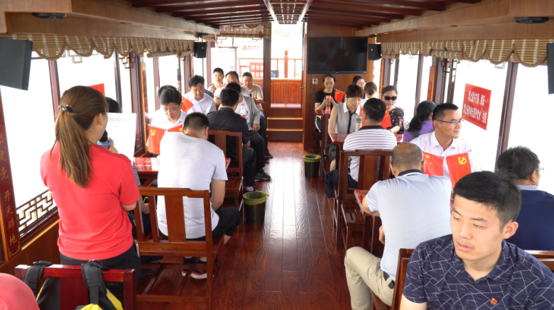 参观结束后,全体人员参加了集团公司新打造的党建品牌“南湖红船讲堂”活动,在“红船”上共同回顾党的历史,聆听建党故事,铭记奋斗历程,切身感受红船精神的伟大意义。在南湖新时代传习中心,全体人员进行了集中交流研讨,畅谈活动体会,大家纷纷表示,一定要传承革命精神,始终牢记入党誓言,坚定共产主义信仰,发扬党的优良传统,奋进新时代,履行新使命,以实际行动为建设中国碳谷·绿金淮北贡献力量。
