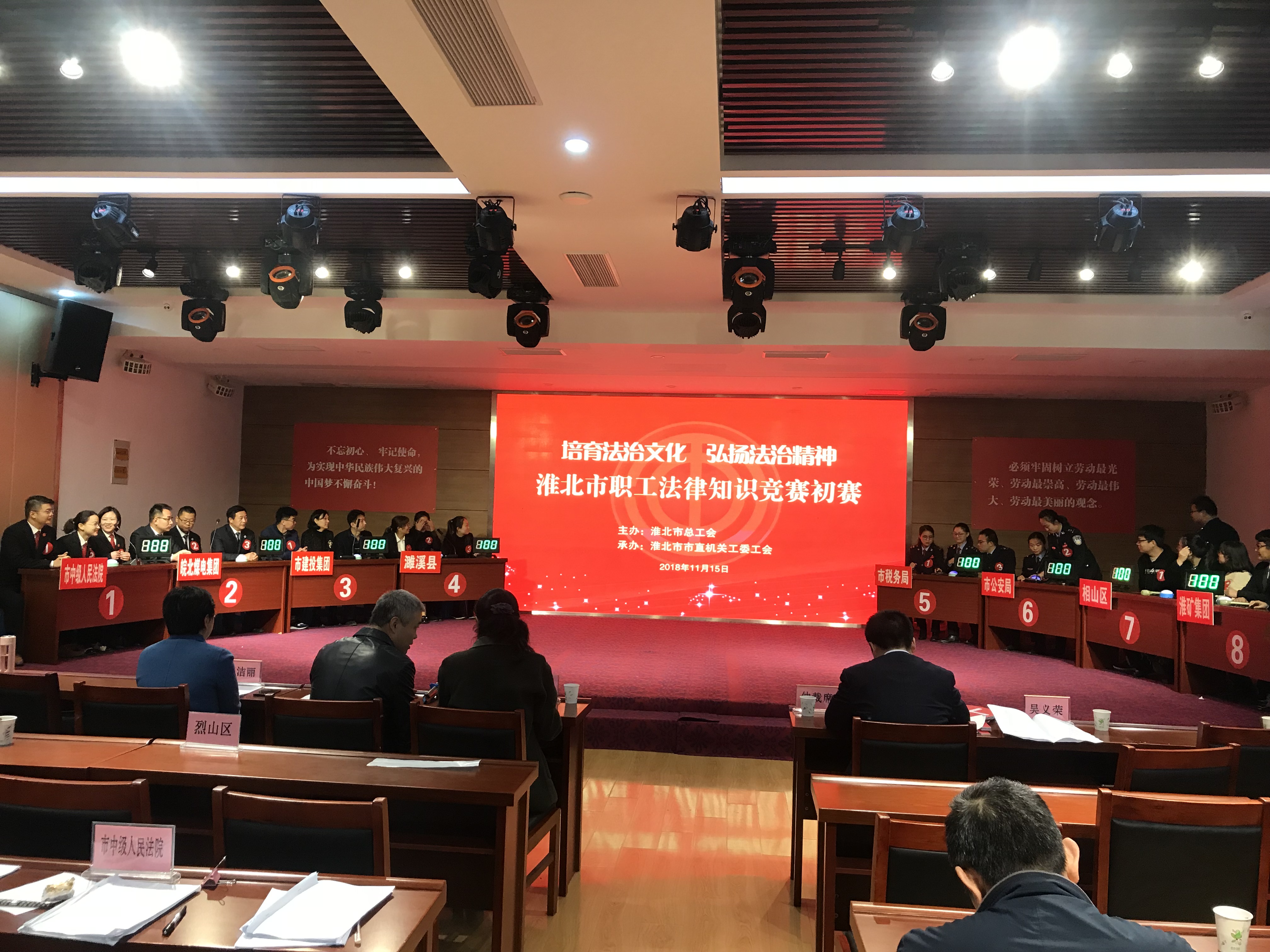 11月15日,“培育法治文化 弘扬法治精神”职工法律知识竞赛在市职工服务中心举行。为深入学习贯彻习近平新时代中国特色社会主义思想和党的十九大精神以及中国工会十七大精神,进一步落实我市“七五”普法规划,丰富法治教育方式和内容,提升全市工会干部和广大职工的法治素养和道德素质,市总工会在全市范围开展了“培育法治文化 弘扬法治精神”主题活动,市建投集团派出代表队参赛。经过激烈角逐,淮北市建投集团代表队获得优胜奖。