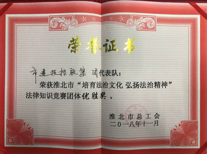 淮北市建投集团获得淮北市职工法律知识竞赛优胜奖