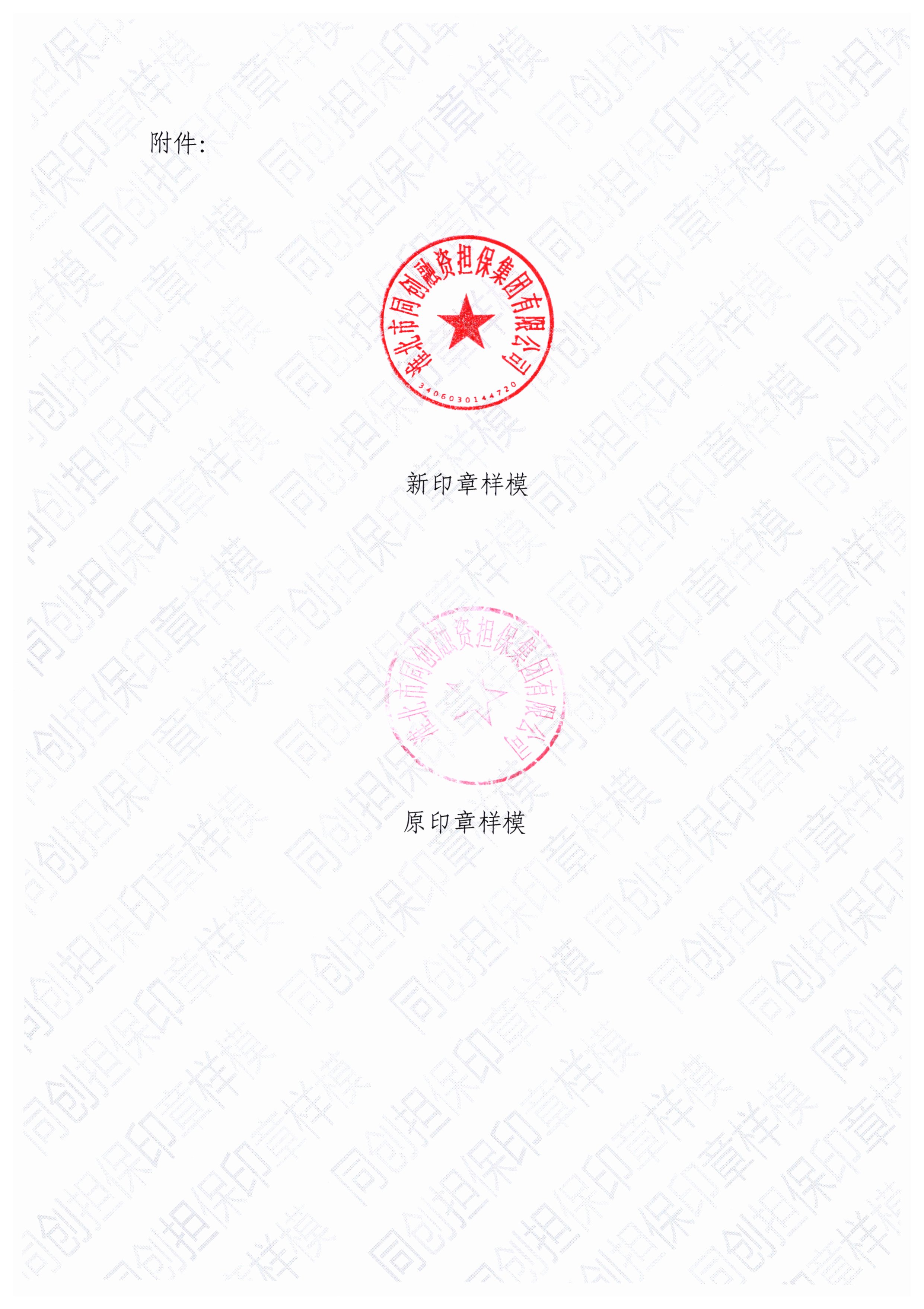 根据工作需要,从即日起启用“淮北市同创担保集团有限公司”新印章,“淮北市同创担保集团有限公司”原印章同时废止。 特此通知。