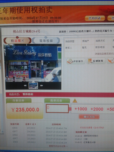 此次公开拍租的是淮海路及古城路十处经营性资产三年期经营使用权,原租户及广大经营业主在中拍协网络平台上展开了公平、公正、激烈的多轮次竞价,十处经营性资产除二处流拍外相继有了新的归属。原经营性资产合同金额604000元/三年,拍租后合同金额783800元/三年,较原经营使用权收益增加了179800元,增幅近30%,实现了国有经营性资产的保值、增值。