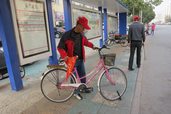 在鹰山路,志愿者拿着小红旗站在路口,维持交通志愿,劝导行人文明过马路;在公交站台,志愿者一边紧张有序的组织乘客排队上车,一边把几辆借用站台做“车棚”的自行车、助力车推到合适的位置;在学校门口,志愿者捡起地上的落叶和一位行人随手丢下的烟头,志愿者无声的举动让这位行人红着脸加快了行走的步伐…