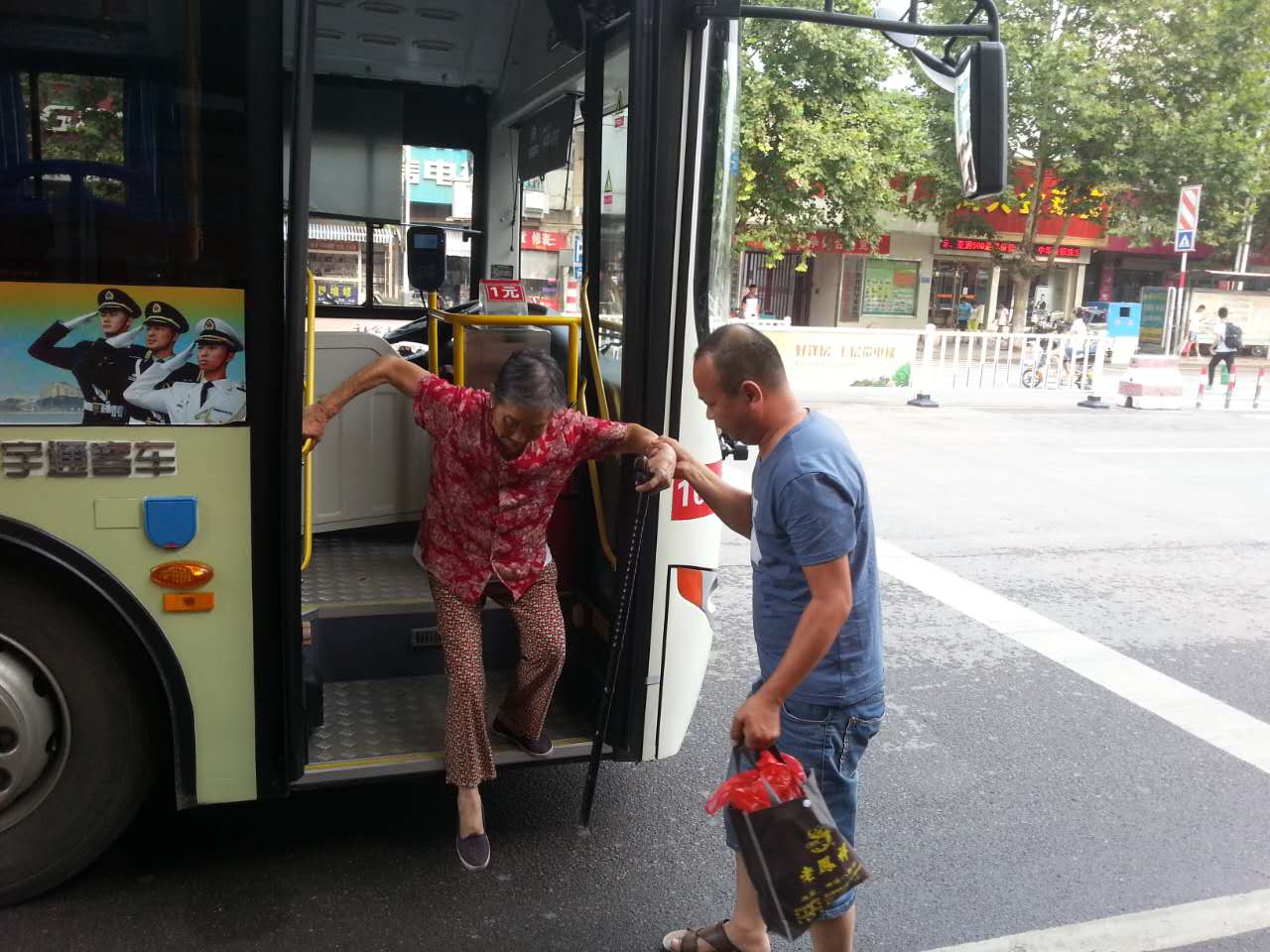 8月16日下午,在109路皖F31391公交车上发生了感人的一幕。一位老大娘由于腿脚不利索,上下车很不方便。驾驶员王辉看到这一幕,亲自把老大娘搀扶下车并把老大娘送到路边。109路的这位司机大哥用那满满的爱心给这炎热的天气送去了一丝清凉,给他点个赞。