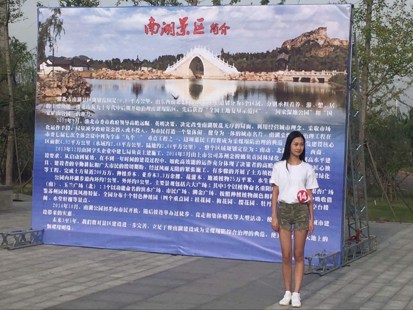 10月30日上午,由淮北市广播电视台承办,淮北市文化旅游体育委员会、淮北市南湖景区建设投资开发有限公司共同主办的“南湖景区杯”2016世界旅游文化形象大使大赛正式开幕。通过海选赛、淘汰赛、总决赛选出5位形象大使代表淮北市参加安徽省旅游文化形象大使比赛。活动地点位于南湖公园南广场,广大市民可以近距离观看比赛。