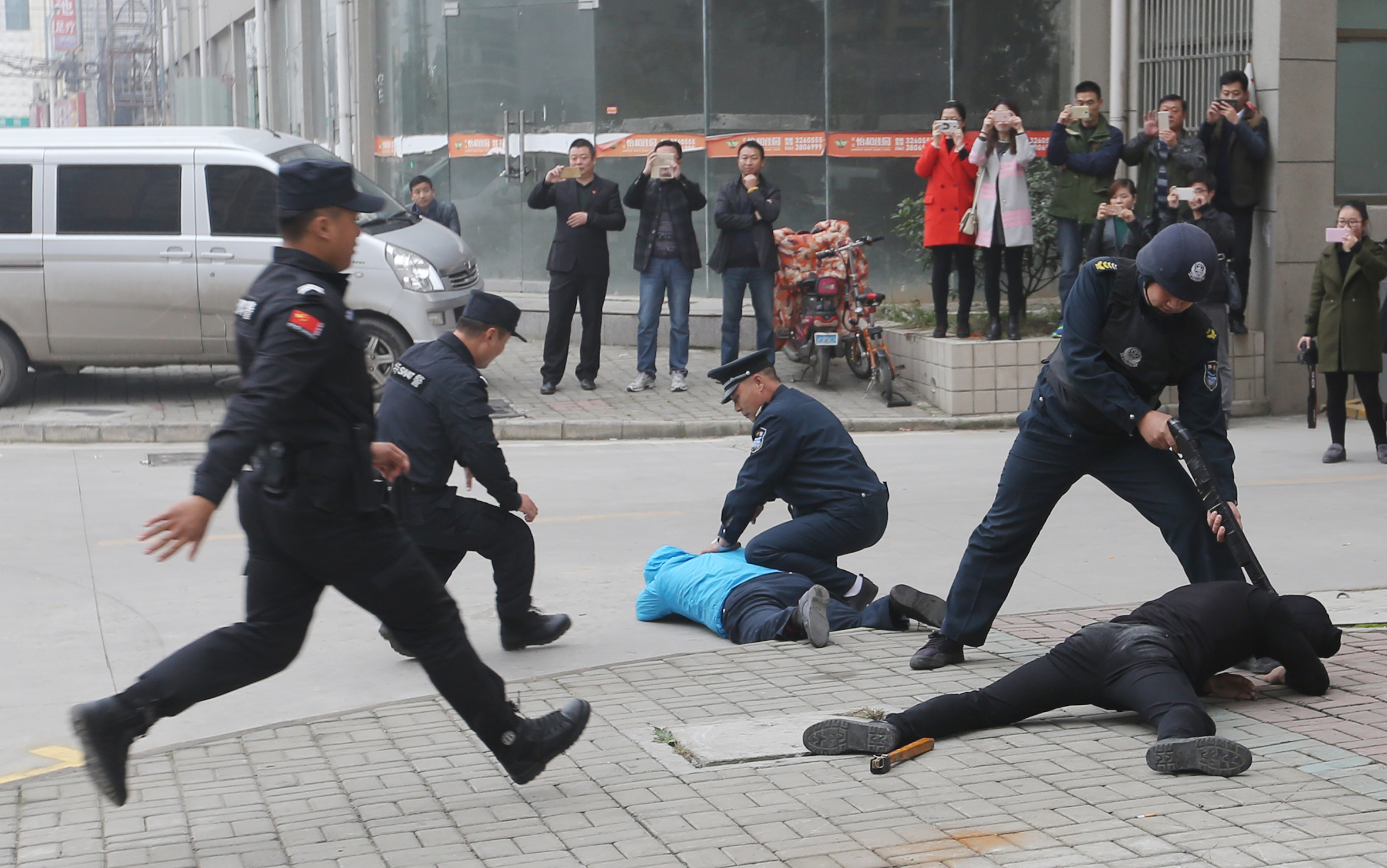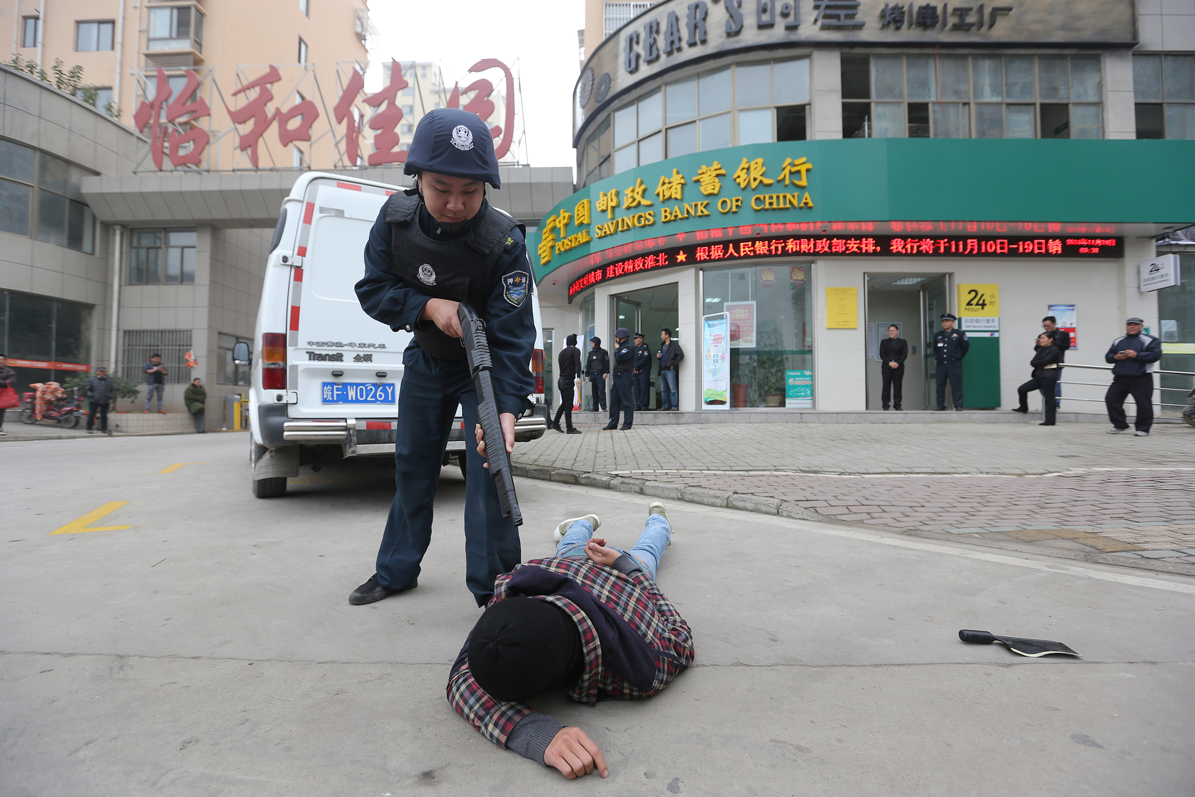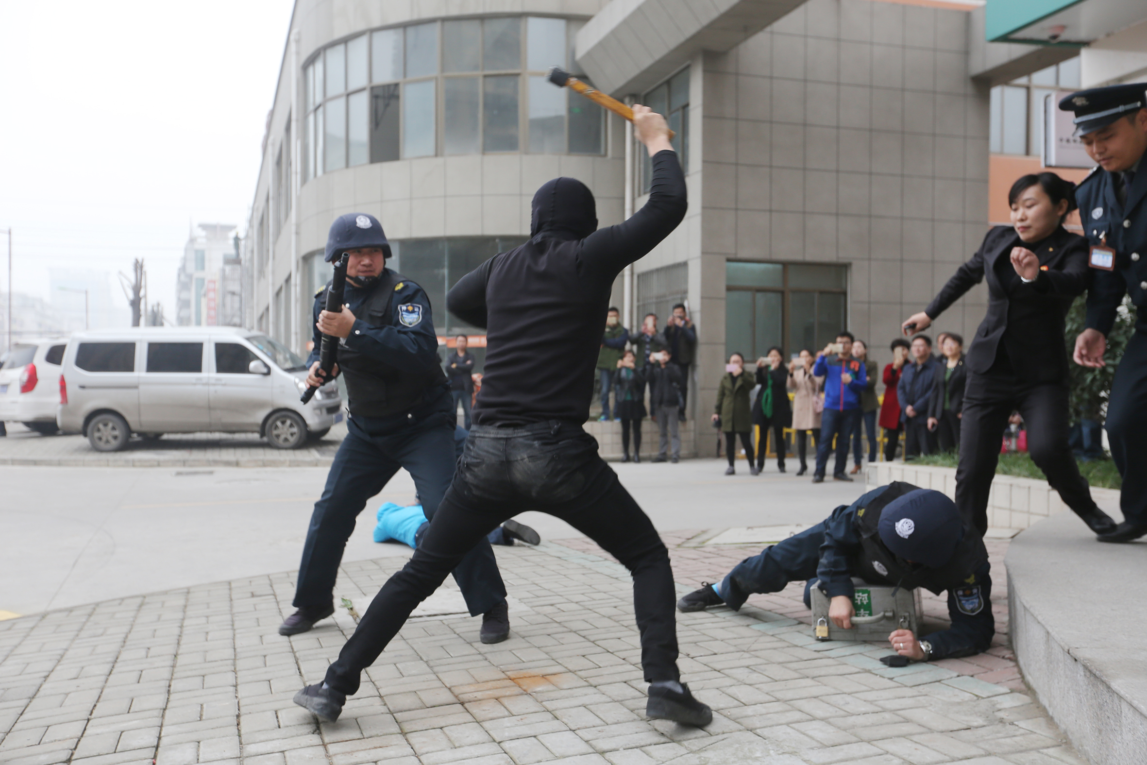 为切实提高押运队员安全防范意识,使押运队员进一步熟悉和掌握防暴力抢劫应急预案流程,增强员工应对突发事件的处置能力和实战能力,按照中国邮政储蓄银行安全保卫工作要求,淮北市保安有限公司联合特警支队、中国邮政储蓄银行于2016年11月19日上午9时在中国邮政储蓄银行惠苑路支行处实施运钞车突遇犯罪份子持刀抢劫款箱应急置预案联合演练。