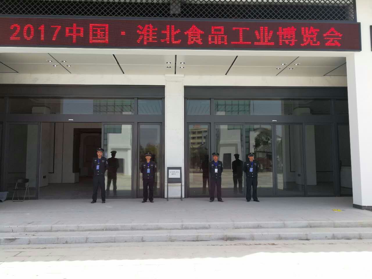 展会期间,淮北市保安有限公司保安队员经过细致的工作,热情的服务,圆满完成2017淮北食品工业博览会安保任务。