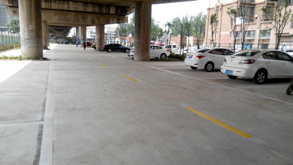 长山路桥停车场经过几天紧张的施工,6月16日完成对地面停车泊位线及场内交通引导线的施划工作。