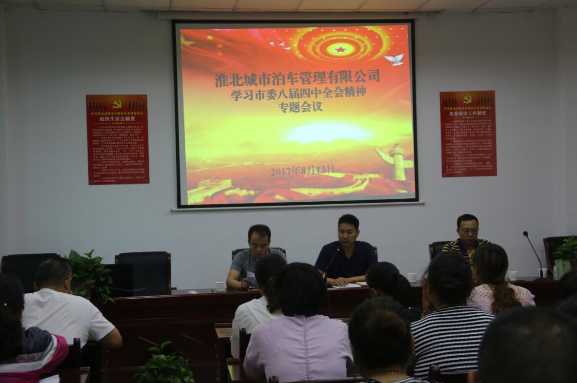 8月13日下午18时,淮北城市泊车管理有限公司召开全体人员专题会议,传达学习市委八届四次全会精神,研究部署贯彻落实全会精神的有关举措。