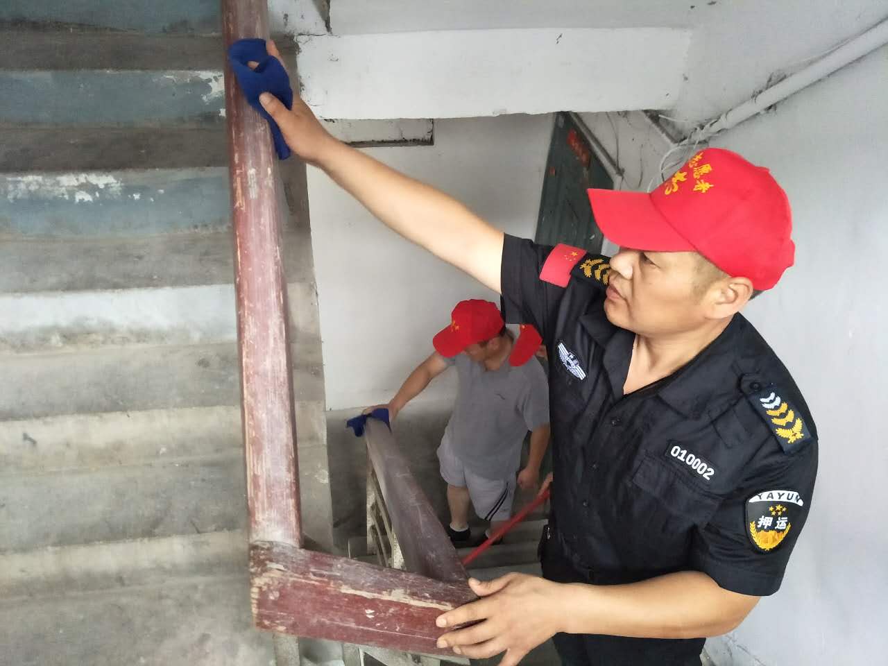 此次志愿义务劳动,一是对海宫社区的路边的卫生死角进行了彻底清扫;二是对楼道扶梯的进行擦拭。