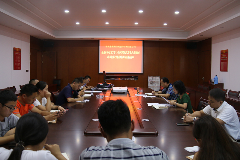 8月22日,南湖公园运营管理有限公司通过会议集中学习的形式,向全公司人员传达了黄晓武同志调研市建投集团讲话精神。