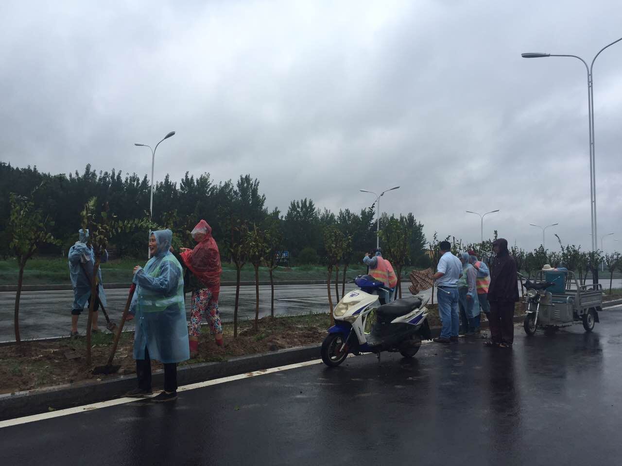 9月10日,公司工程部员工冒着瓢泼大雨在市政府重点工程—梧桐路工程的施工工地上进行绿化施工。据工程部部长张勇介绍,为了响应市政府创建工作,抓住雨天种植绿化树木的成活率高,调动公司各部门加班加点,克服雨中施工的困难,为创建工作做出最大努力。