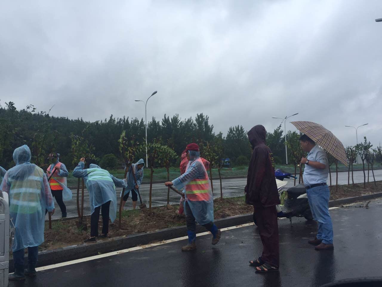 生态景观公司为确保树木成活率,雨中抢种绿化树木