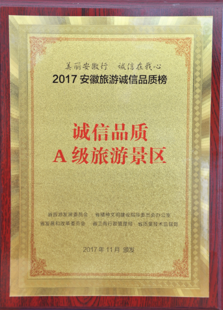 据了解,此次评选活动是由省旅游局、省文明办、省发改委、省工商局、省质监局主办,各地市旅游局及旅游协会协办的一次全省性的安徽旅游诚信品质评选推荐活动。旨在激励全行业不断“比学赶超”,向先进“看齐”,向品牌”靠拢”,全面树立安徽旅游“诚信+品质”的整体形象。经过长达4个月的选拔,2017年11月11日,以“美丽安徽行,诚信在我心”为主题2017年安徽旅游诚信品质榜暨安徽旅游诚信日发布榜单,淮北市南湖景区被评为“安徽旅游诚信品质A级旅游景区”。