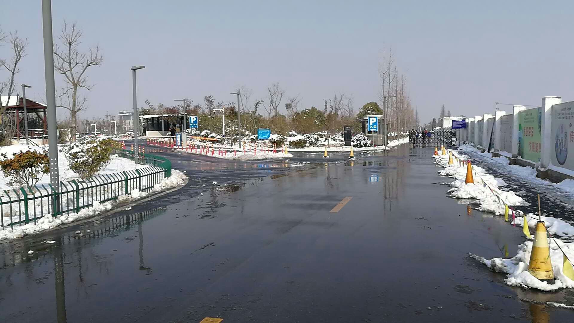 2018年1月4日,入冬以来的第一场大雪给南湖景区披上了银装,湖光山色变成了一片梦幻的童话世界。然而景区内的积雪,湿滑的路面给游客游览观光和车辆运营带来了很大不便。