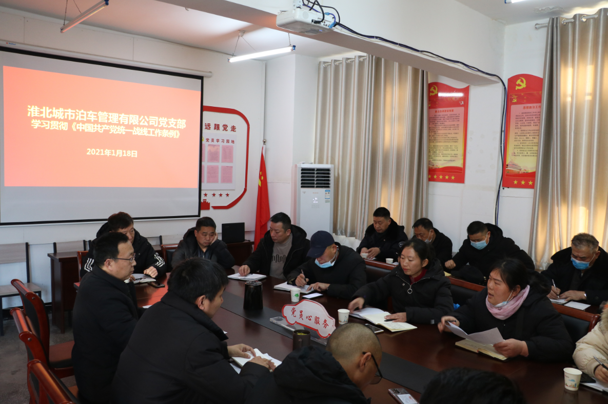1月18日,城泊公司党支部组织集中学习,学习贯彻《中国共产党统一战线工作条例》。
