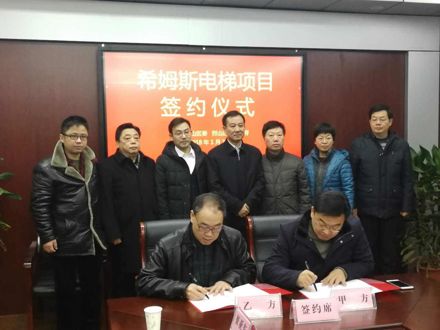 2018年1月30号上午,希姆斯电梯(淮北)有限公司与希姆斯电梯(中国)有限公司在淮北市建投集团签定了《希姆斯电梯项目签约协议》。淮北市烈山区区委书记张力、区长岳军芝、区委副书记马建国以及副区长邓顶宇、区人大主任陈琳出席了此次签约仪式,希姆斯电梯(中国)有限公司总经理庞文岳、市建投集团总经理助理周开宇、希姆斯电梯(淮北)有限公司总经理崔亚东、董事谢恺以及负责人刘波共同见证了这一历史性的时刻。