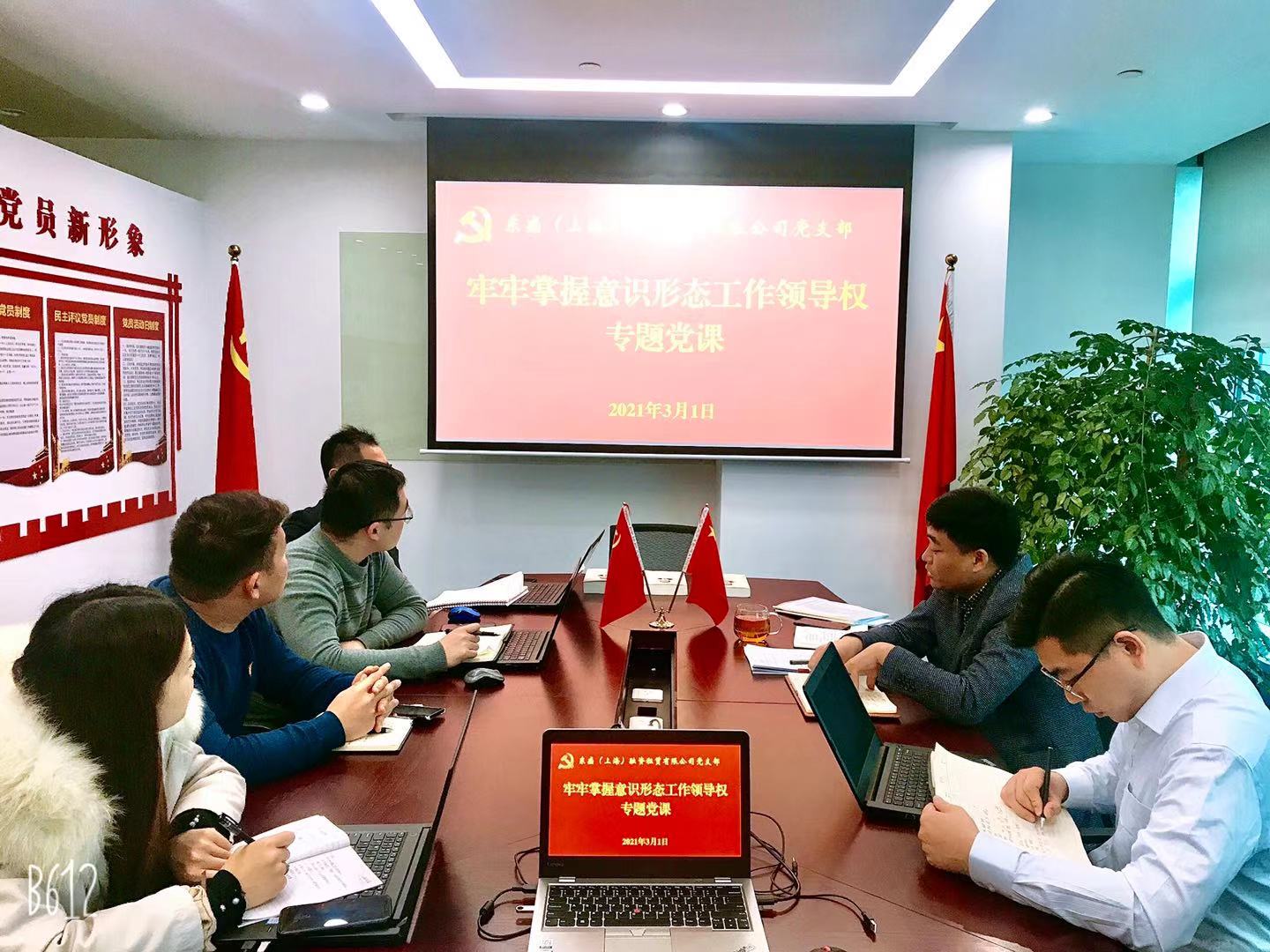 为加强东盛融资租赁公司意识形态工作,3月1日上午,支部书记王智同志为全体党员干部上了一堂主题为《牢牢掌握意识形态工作领导权》的专题党课。