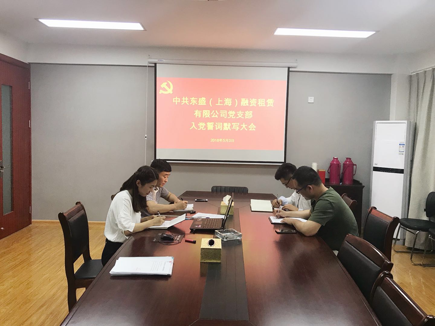 2018年5月3日下午,东盛公司全体党员在会议室开展“重温入党誓词”活动,在总经理王智的带领下,面对党旗,大家举起右手,精神饱满、庄严宣誓,集体重温入党誓词。并在宣誓后,进行了入党誓词的默写。