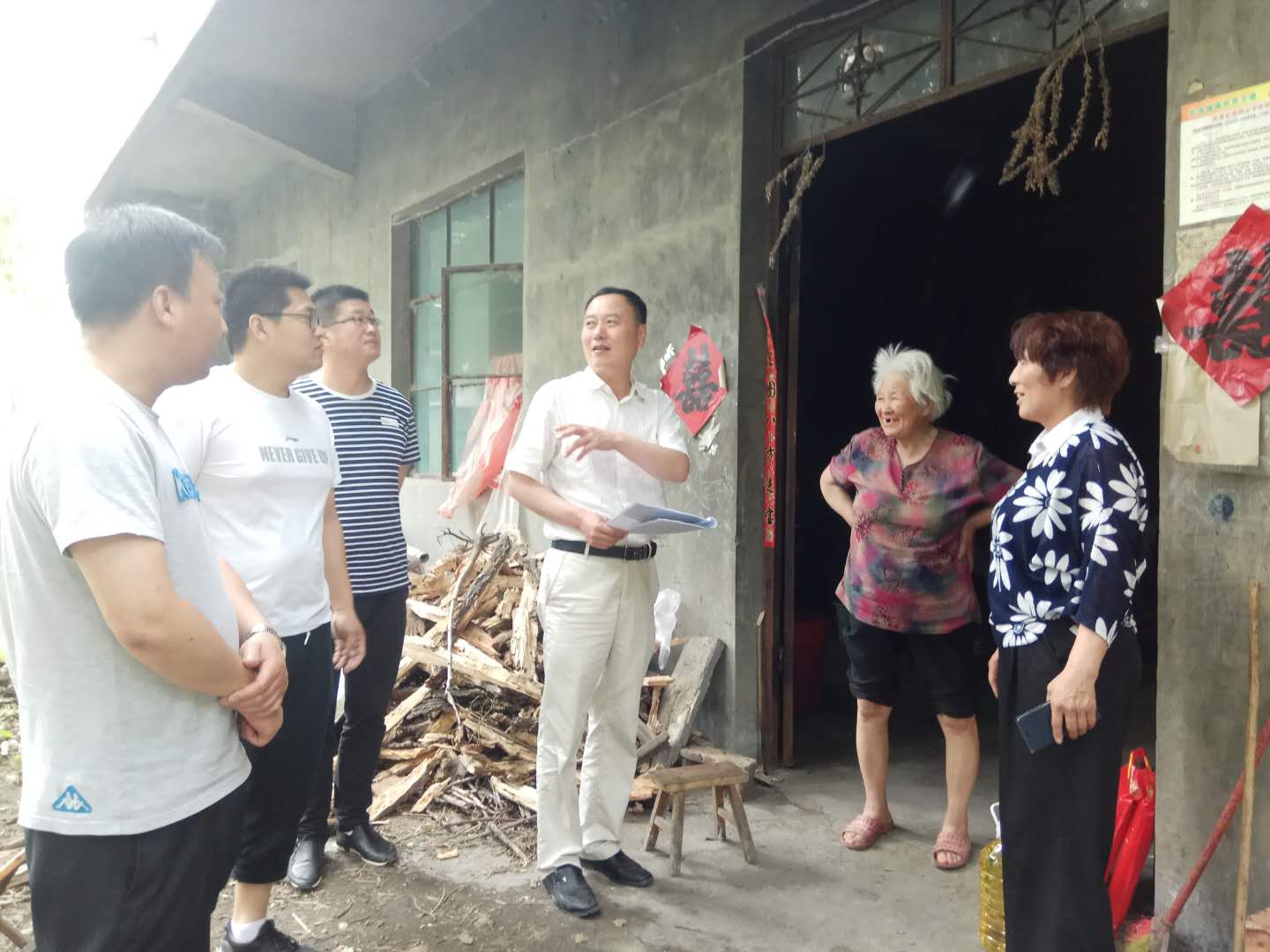 2018年5月29日下午,由通鸣公司支部副书记程南华同志带队,与通鸣公司副总经理张震同志及部分党员同志一行人走访慰问了火神庙村贫困户周维九家庭,并给贫困户带来了大米、油、面条等生活用品。