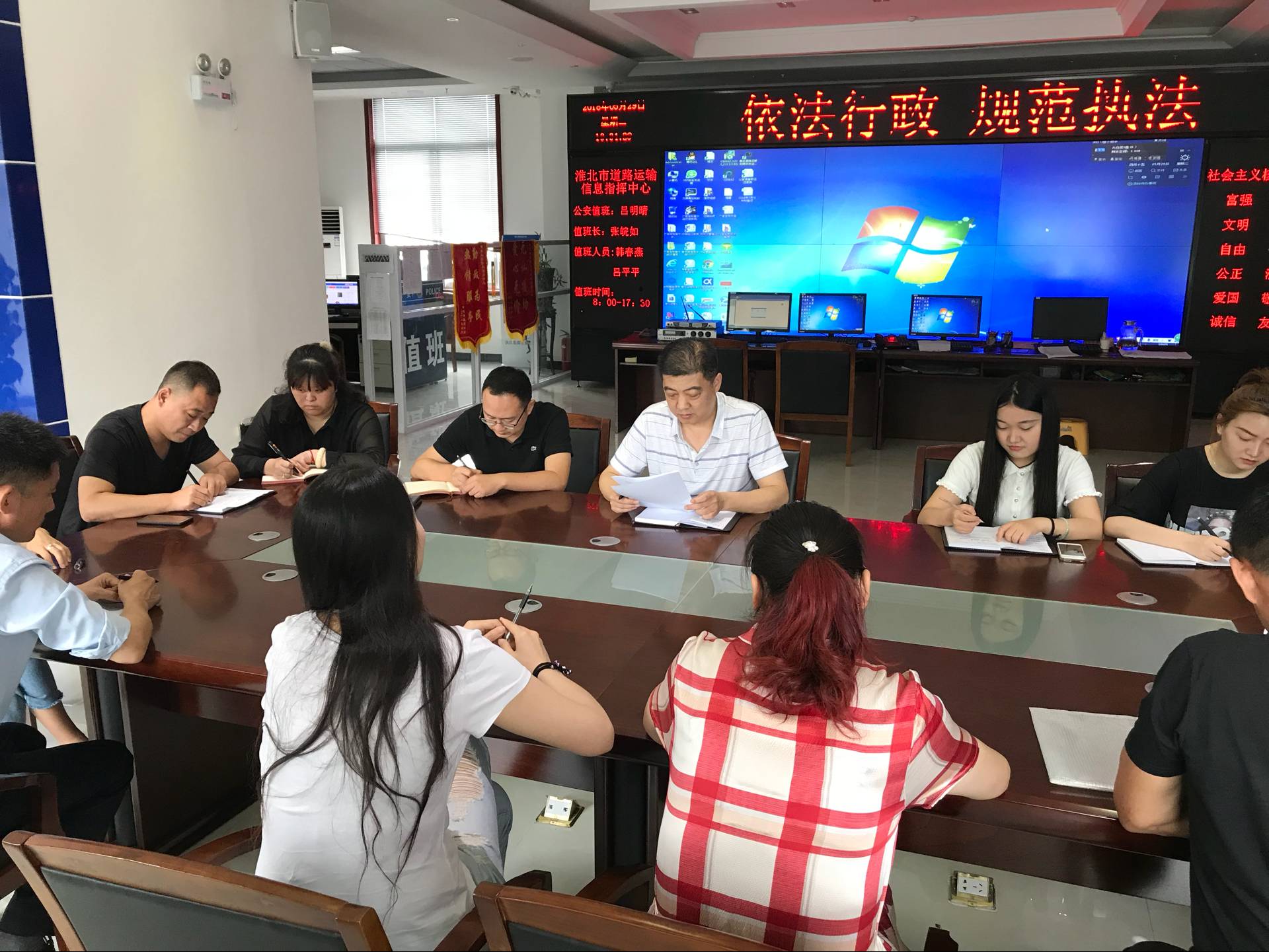 5月29日上午,融通公司总经理张晓兵同志在市道路运输信息指挥中心一楼大厅组织公司全体员工学习《关于五起“不作为、不担当、乱作为”典型问题的通报》。