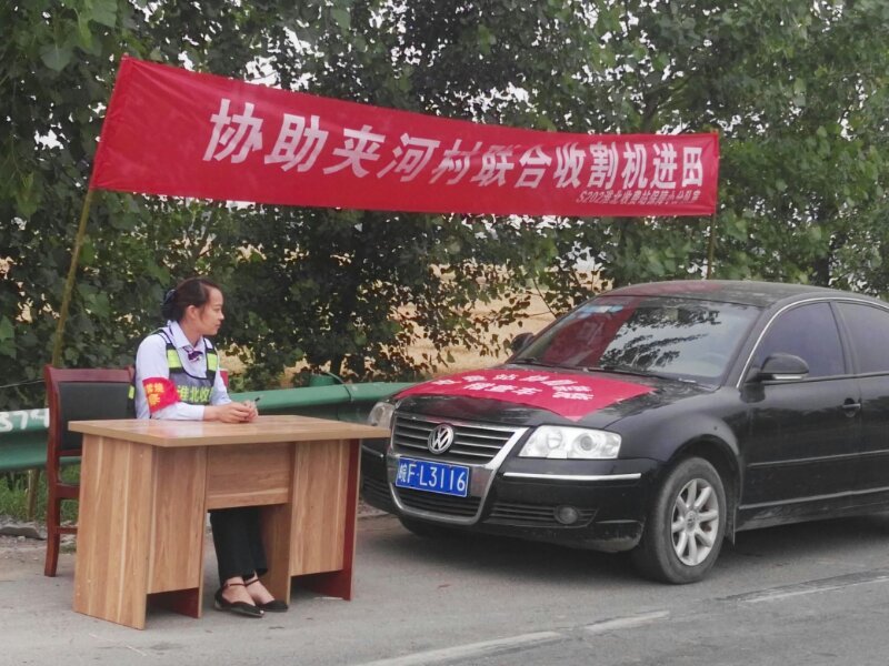 S202收费站设立协助联合收割机进田服务点,有效挽回公司损失