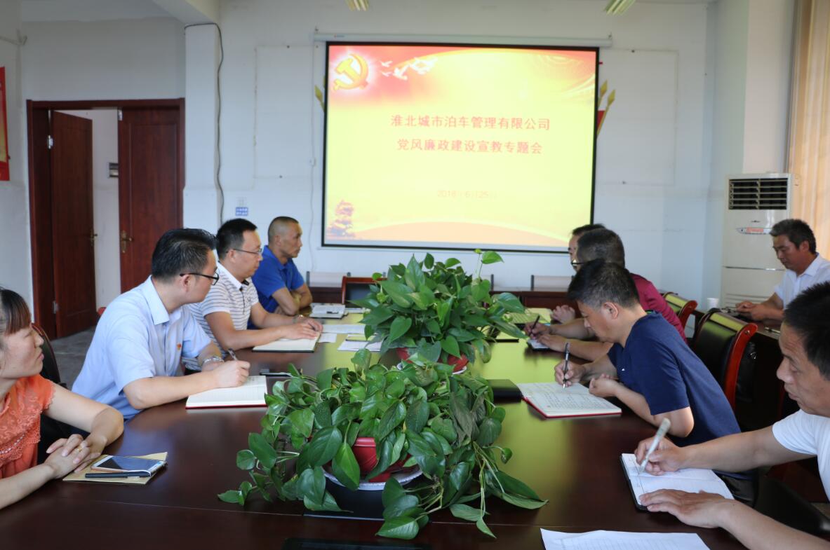 6月25日,城泊公司召开了党风廉政建设宣教专题会,公司全体党员、管理人员、停车场班长参加了会议。