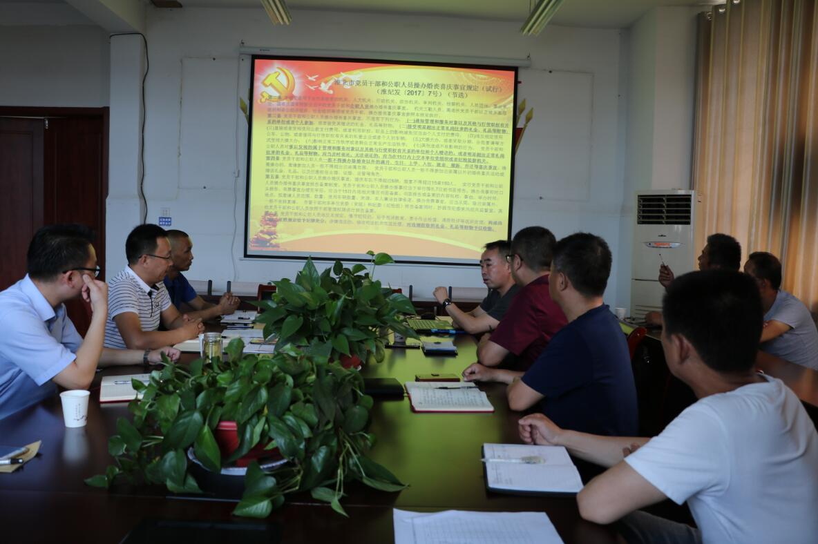 会上,深入学习了《淮北市党员干部和公职人员操办婚丧喜庆事宜规定(试行)》、《关于严禁党员干部和公职人员操办“升学宴”“谢师宴”的通知》和《爱游戏官方网站员工使用微信等即时通讯工具的规定》,并围绕文件的核心精神进行了热烈的讨论。