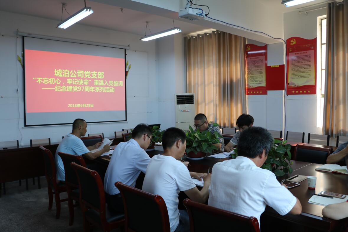 6月28日上午,城泊公司党支部根据集团公司《关于开展纪念建党97周年系列活动的通知》精神,组织全体党员干部开展了“诵读经典”及“重温入党誓词”活动。