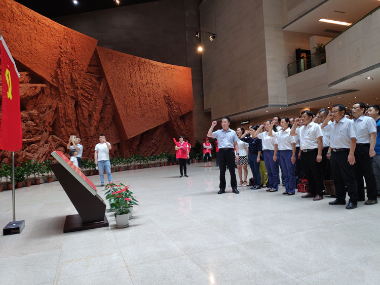会后,全体党员同志前往渡江战役纪念馆进行参观学习。在纪念馆一楼大厅,面对鲜红的党旗,三个支部的党员领导干部重温入党誓词,进一步坚定了党员的理想信念,增强了党员的责任感和使命感。