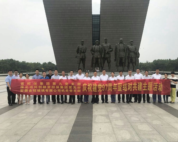 7月5日,为贯彻落实党的十九大精神,纪念中国共产党成立97周年,省担保集团第九党支部、淮北市同创融资担保集团有限公司党支部、安徽金冠玻璃有限责任公司机关党支部,在安徽担保大厦开展了“两争两促”结对共建暨“新时代、新担当、新作为”主题党日活动。