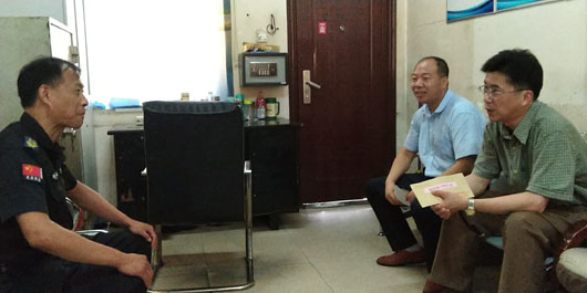 在中国共产党成立97周年之际,7月13日上午,集团公司党委委员、纪委书记王献忠在淮北市保安有限公司党支部书记、副书记的陪同下来到押运一中队看望慰问生活困难的老党员,送去党组织的关怀和温暖。他要求各级党组织要怀着深厚感情,用心用情为困难老党员排忧解难,让广大老党员和困难党员切实感受到党组织的关怀与温暖。