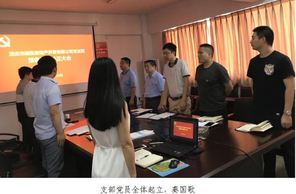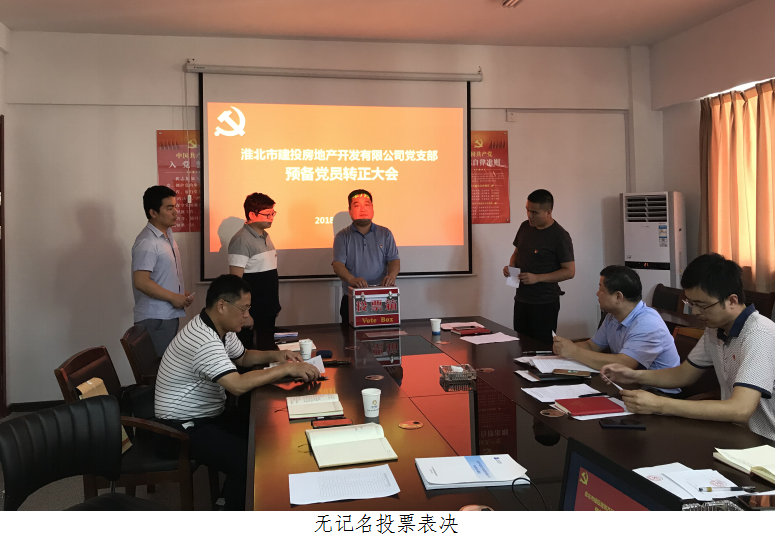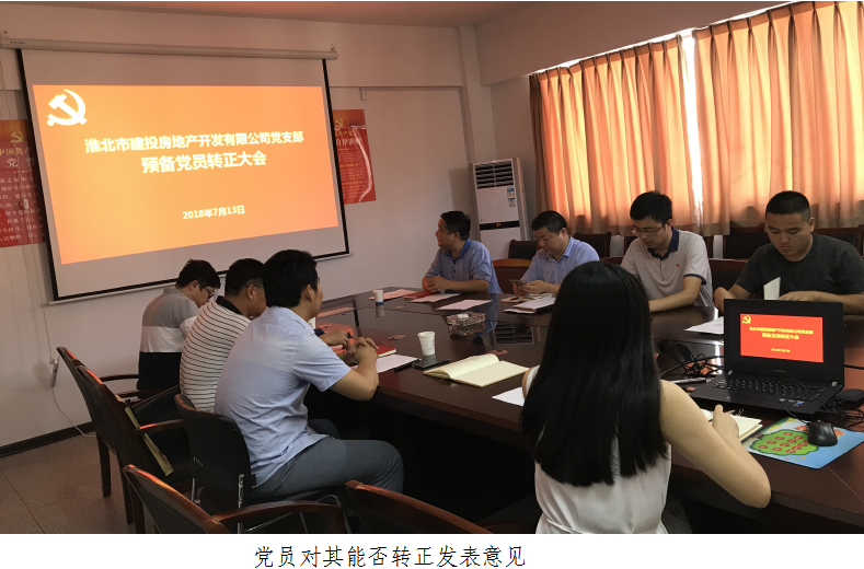 2018年7月13日下午,建投房地产公司党支部在党员活动室召开了预备党员转正大会,研究讨论公司支部预备党员王申瑞转正问题。