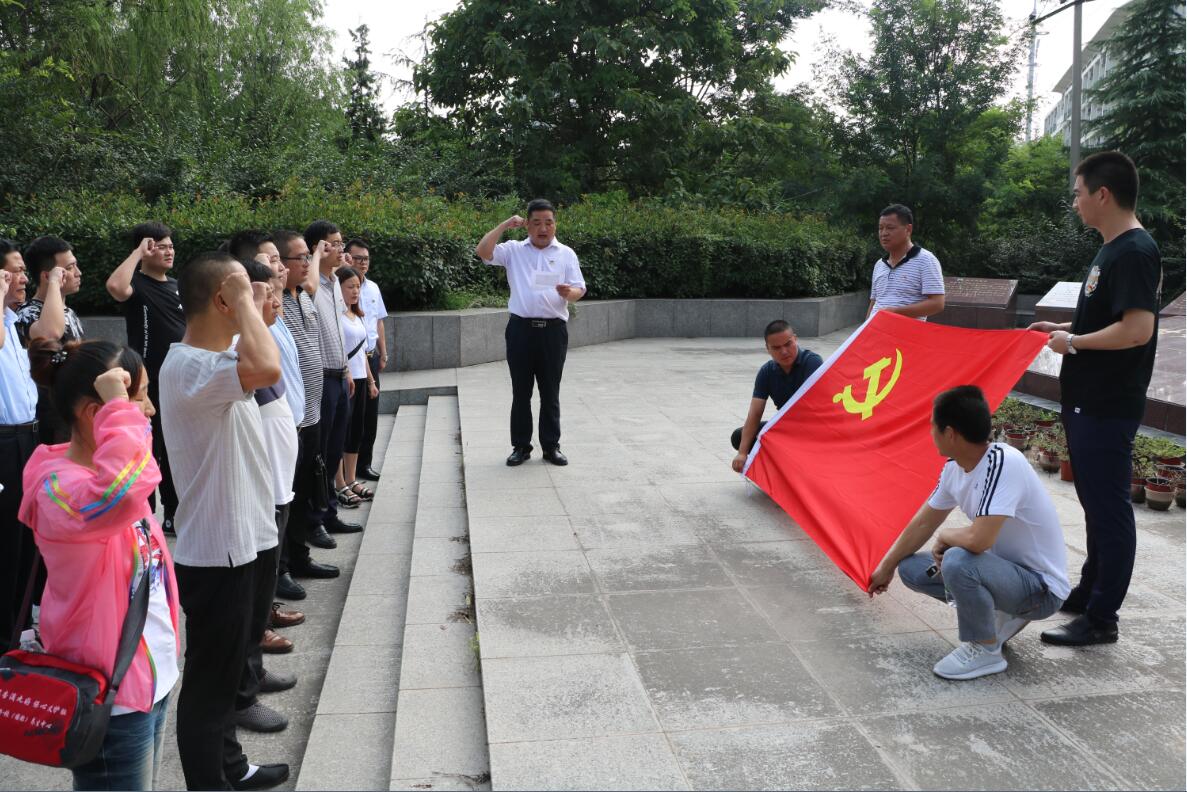 参加活动的全体党员在烈士纪念碑前,向烈士纪念碑三鞠躬,深切缅怀烈士们的丰功伟绩,深情瞻仰烈士纪念碑,向革命烈士致以深深的敬意。全体人员在革命烈士纪念碑前列队向党旗庄严宣誓,重温入党誓词。