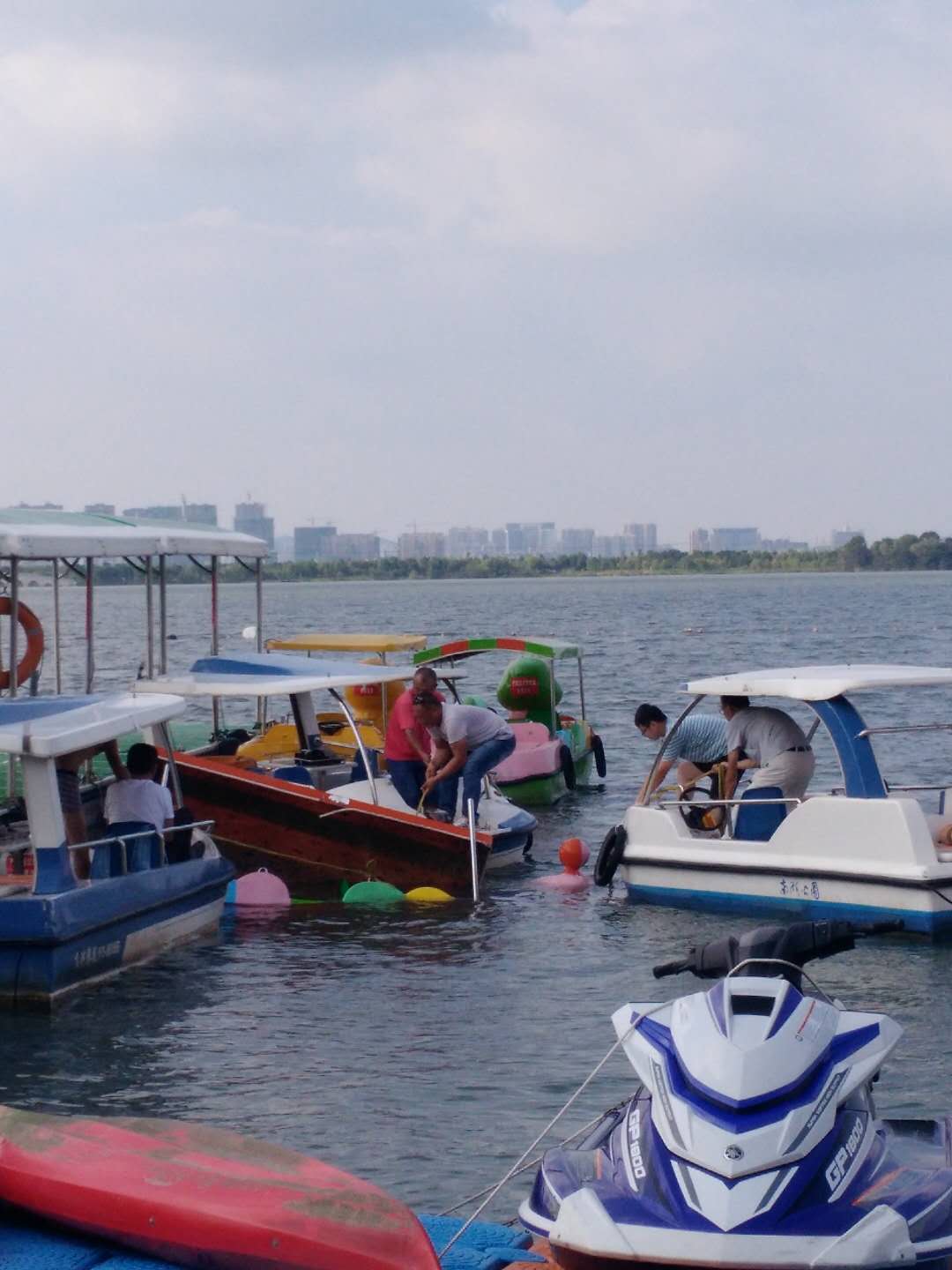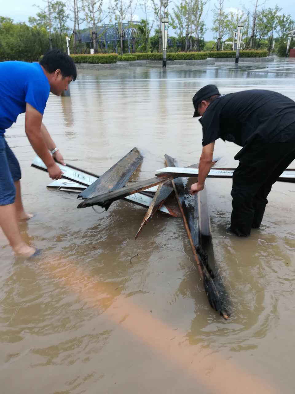 在抢险的第一线,淮北市南湖公园运营管理有限公司全体工作人员在公司领导带领下,面对洪灾的严峻考验,始终坚持安全至上,做到“汛情消退,警惕不松”,在做好安全防护措施的同时,积极开展灾后重建,确保了南湖景区优美舒适的游览环境。