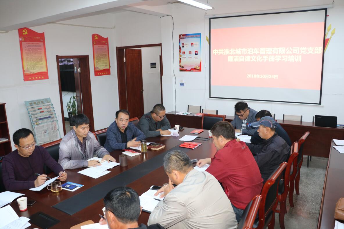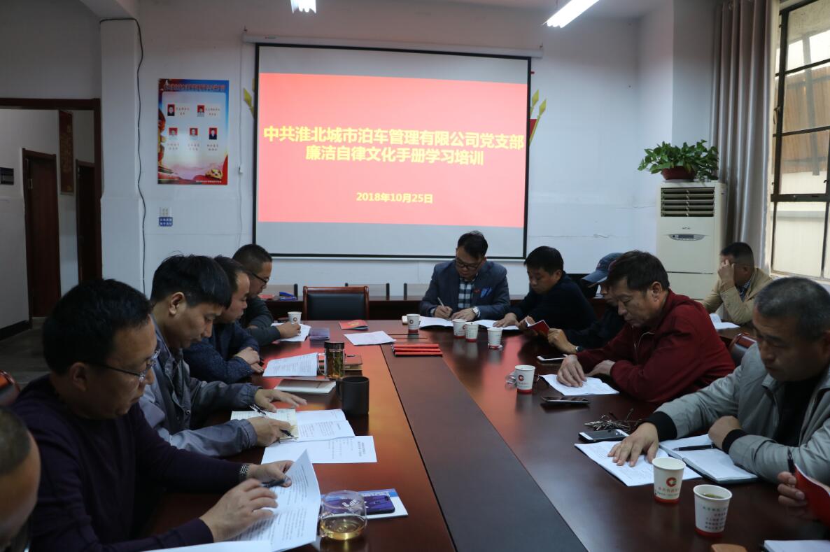 城泊公司党支部组织学习《淮北城市泊车管理有限公司廉洁自律文化手册》