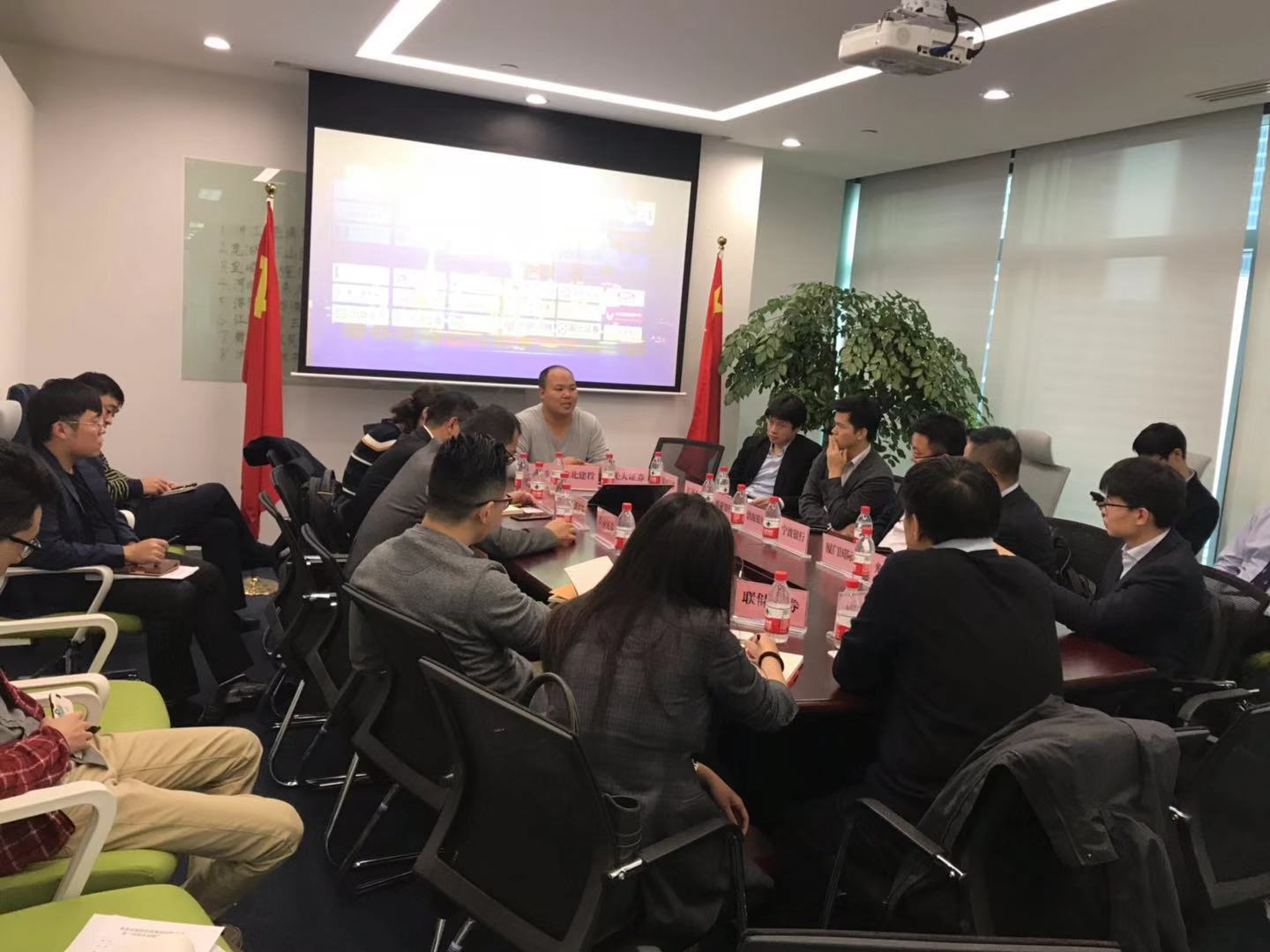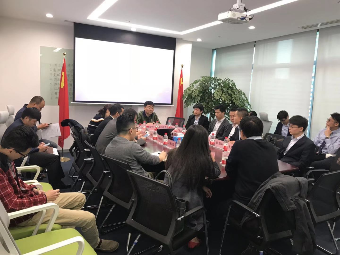 2018年10月31日下午,集团公司驻上海办事处负责人王智在办事处会议室主持召开第一次银企对接会。上海市金融办金融管理处处长王宏君、集团公司融资一部部长刘风雷、融资二部李子恒及宁波银行金桥支行行长肖磊、国元证券副总经理王琦、长城信托副总经理顾光臣、上海裕安投资集团投行部总经理蔡为群,光大银行联洋支行行长张建红等21家金融机构代表参加了此次对接会。