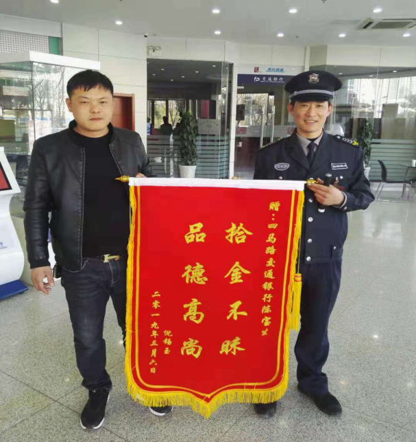 “不用了,这也是我应该做的,算不了什么,换作是别的保安也会这么做。”几句朴实无华的话,充分践行了一名保安队员“诚实服务、忠于职守”的岗位风采。3月6日倪先生又送来锦旗再次表示感谢。陈宝生同志只是淮北市保安有限公司人防二中队一名普通的保安员,但他认真履职,心系客户,拾金不昧的行为受到了同事的好评,得到了银行领导和保安公司领导的充分肯定。高尚品质和高度负责的工作态度,赢得了客户的高度赞赏,也为公司赢得了良好的社会声誉。