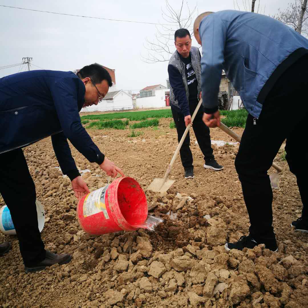 扶贫果树不能一种了之–城泊公司组织党员干部为扶贫户果树施肥养护