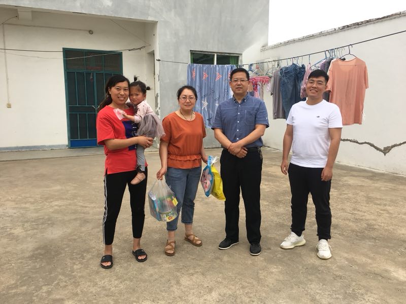5月28日 ,扶贫四组成员前往刘桥镇火神庙村张云龙、黄景玉两户贫困家庭走访,为贫困儿童送去了“六一”的关怀,提供了衣物、书籍和夏季驱蚊用品,让他们能够安心学习,快乐成长;同时为黄景玉老人送去了药品和夏季驱蚊用品,与老人聊聊家常,并温馨提醒老人天气炎热,注意防暑。