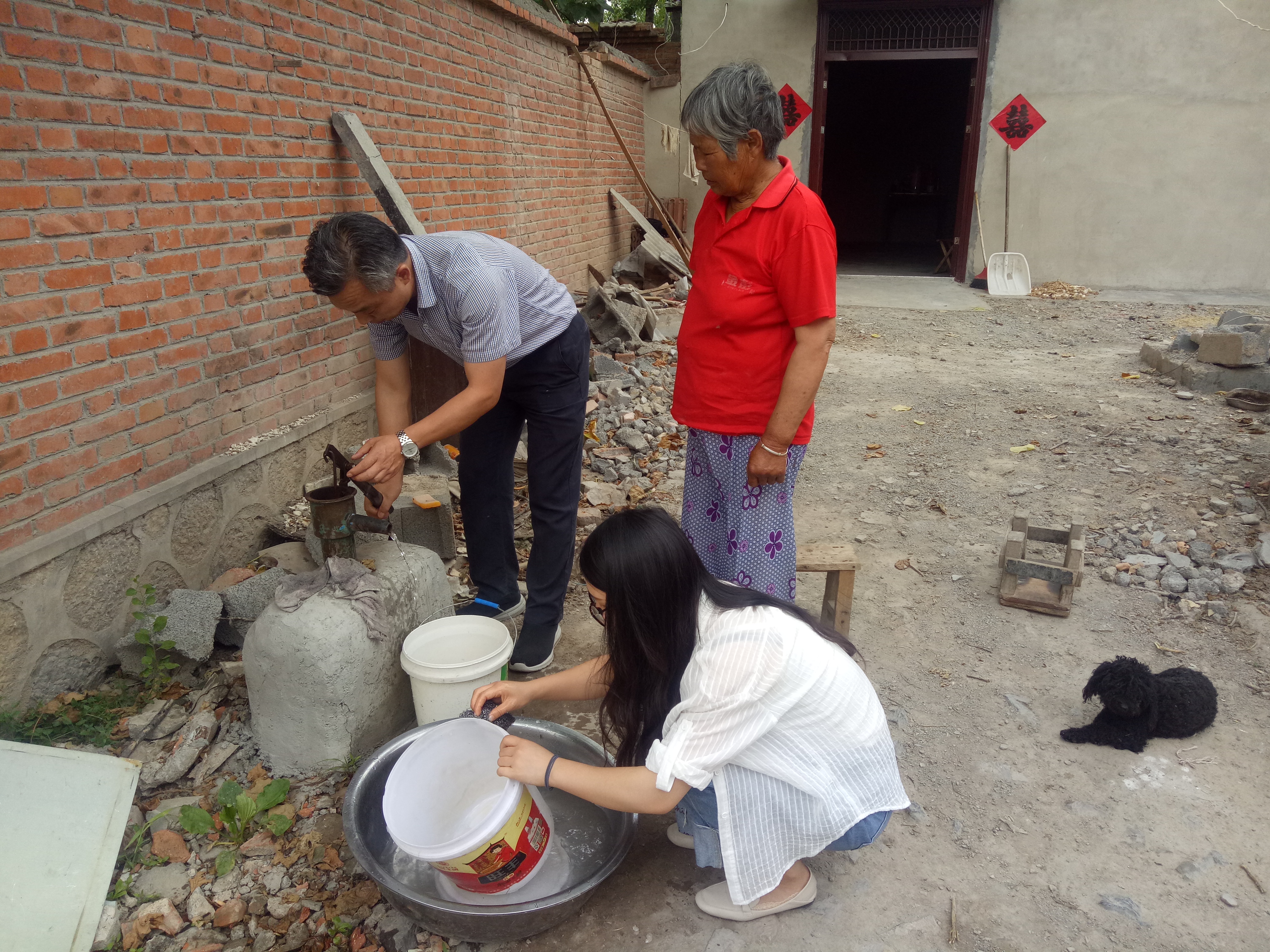 5月31日下午,同创担保公司扶贫小组一行来到火神庙村帮扶户梁长更家,和老人聊家常,了解老人目前生活状况。在得知老人这几天腰疾复发,自留菜地无法浇水的情况后,扶贫小组成员立即动手,帮老人压水浇地,老人非常高兴。
