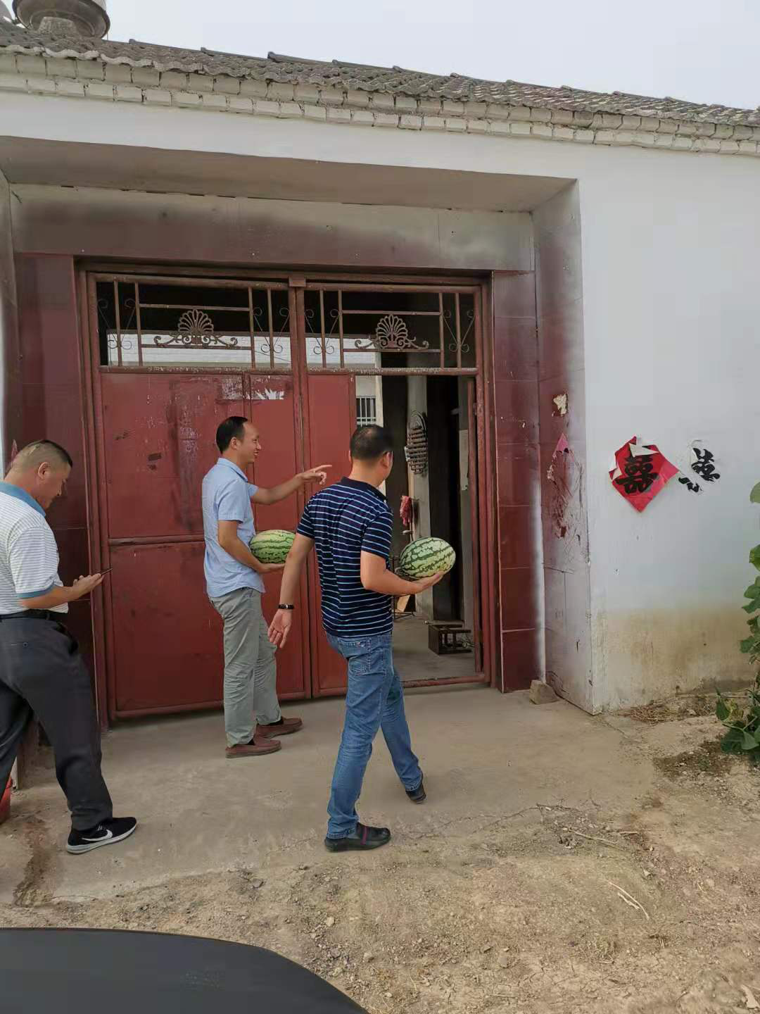 7月23日下午,交投石化公司扶贫小组成员在公司副总经理唐松带领下,冒着酷暑高温,前去扶贫对象赵书华家慰问。