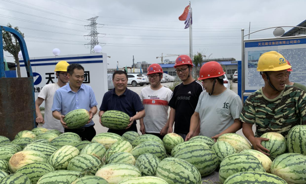 时值炎炎夏日、酷暑三伏,临投公司各在建项目施工一线人员依然坚守在工作岗位上,为煤化工基地的发展挥洒着汗水。为了给施工一线人员送去丝丝清凉和关怀,临投公司于7月18日前往火神庙村贫困户戴凤英家购买了爱心西瓜2200斤,并赴各在建项目现场,将爱心西瓜送到了施工一线人员手中,向他们在高温酷暑中的辛苦劳动表示慰问,并要求各施工单位做好防暑降温工作,确保施工安全。