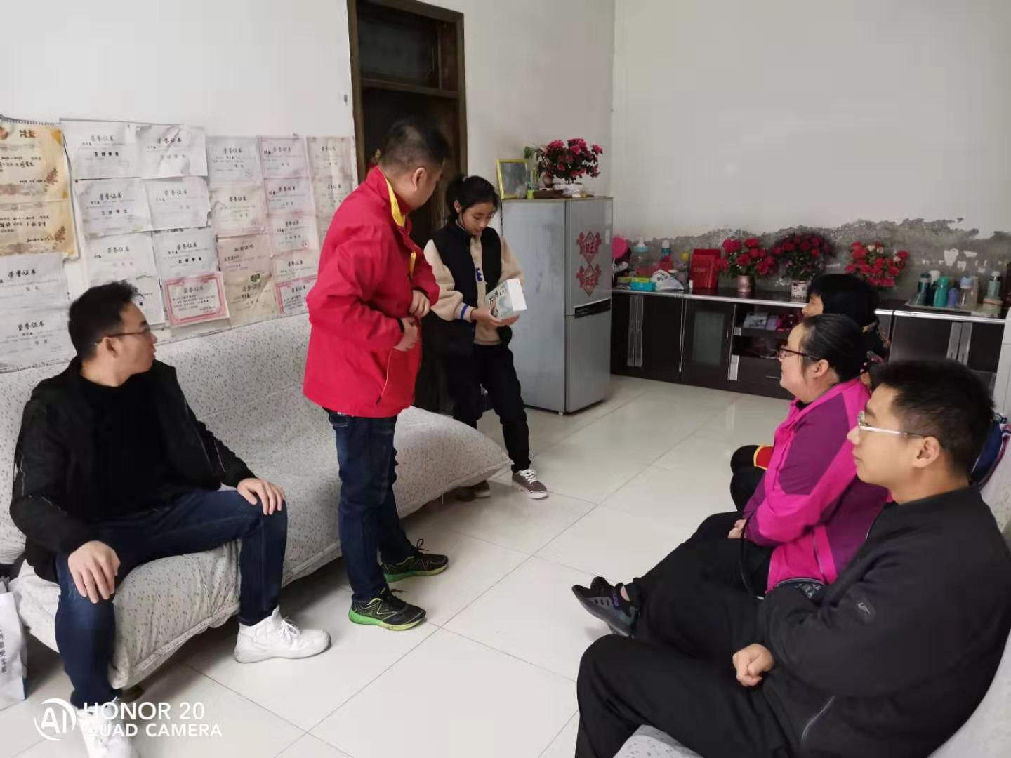 在困难学生家里,党员同志们亲切地跟她唠家常,仔细询问了她的生活、学习情况,并提出殷切希望,鼓励她克服困难,在逆境中自强不息、刻苦学习。