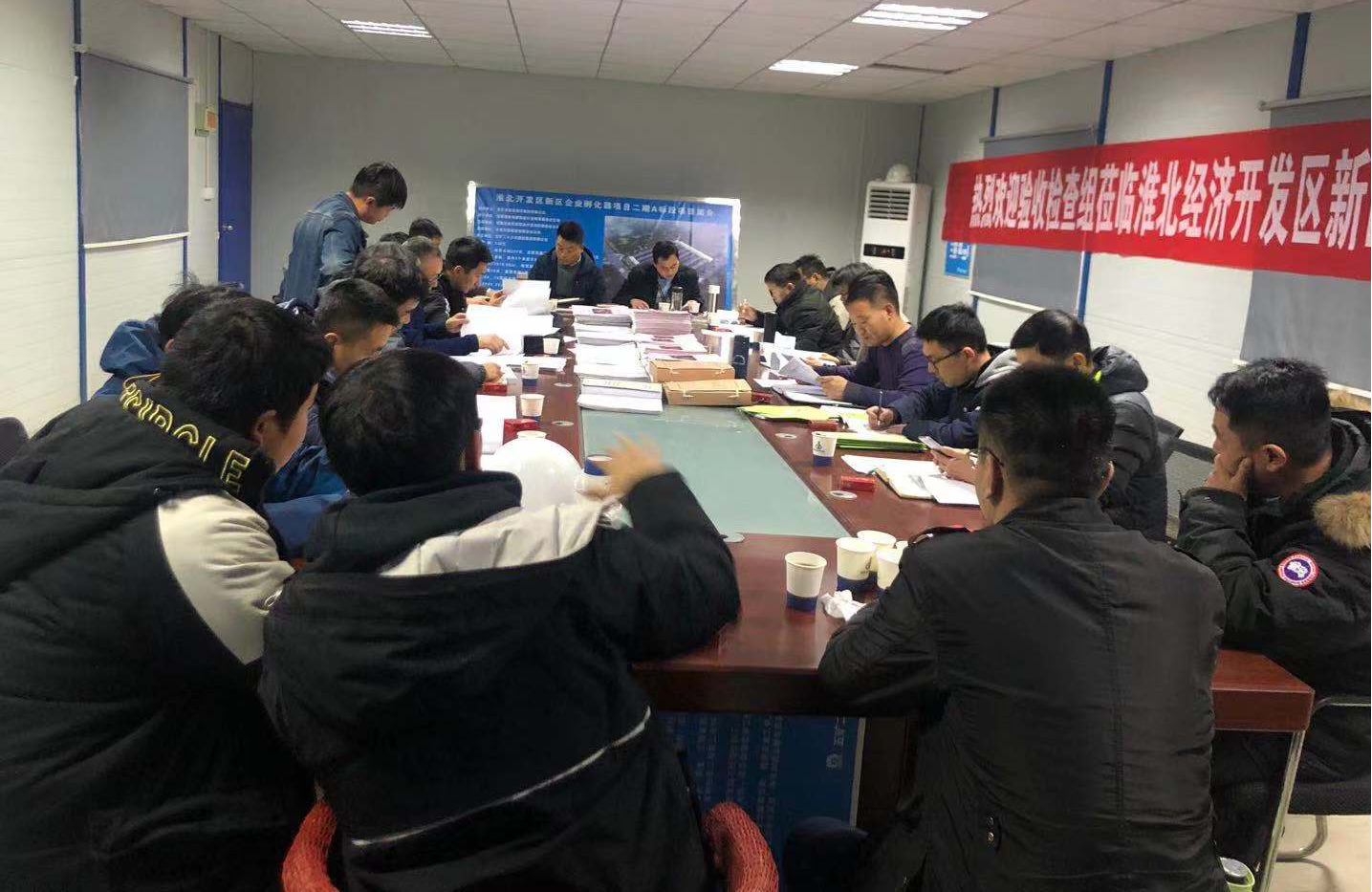 下午3点,冒着绵绵细雨,市建投集团(建设单位)、安徽省金田建筑设计咨询有限公司(勘察、设计单位)、五矿二十三冶建设集团有限公司(施工单位)、中泰天顺集团有限责任公司(监理单位)五方责任主体,以及监管部门市开发区住建分局共同组成的验收组对A标段进行了竣工验收。首先由五方责任主体分别进行质量汇报和质量评估,然后分为建筑结构组、水电安装组、资料组进行实地质量检查和工程资料检查,最后由各分项验收组和监管部门分别发表验收意见,建设单位作工程验收总结。