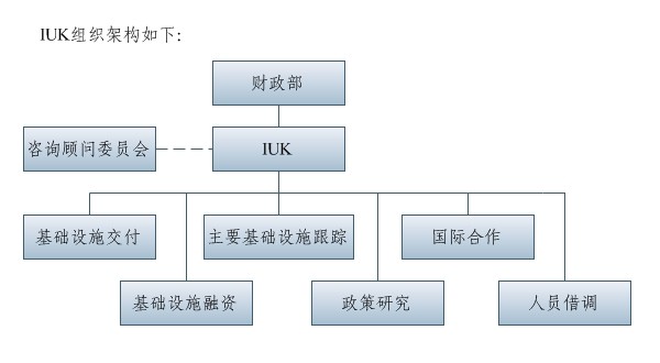 英国PPP管理机构发展分为两个阶段,第一阶段(2010年前),财政部于1997年设立一个PPP工作组,负责PPP相关工作;第二阶段(2010年后),财政部正式成立一个部门——基础设施建设局(IUK, Infrastructure UK),统一负责PPP管理工作。