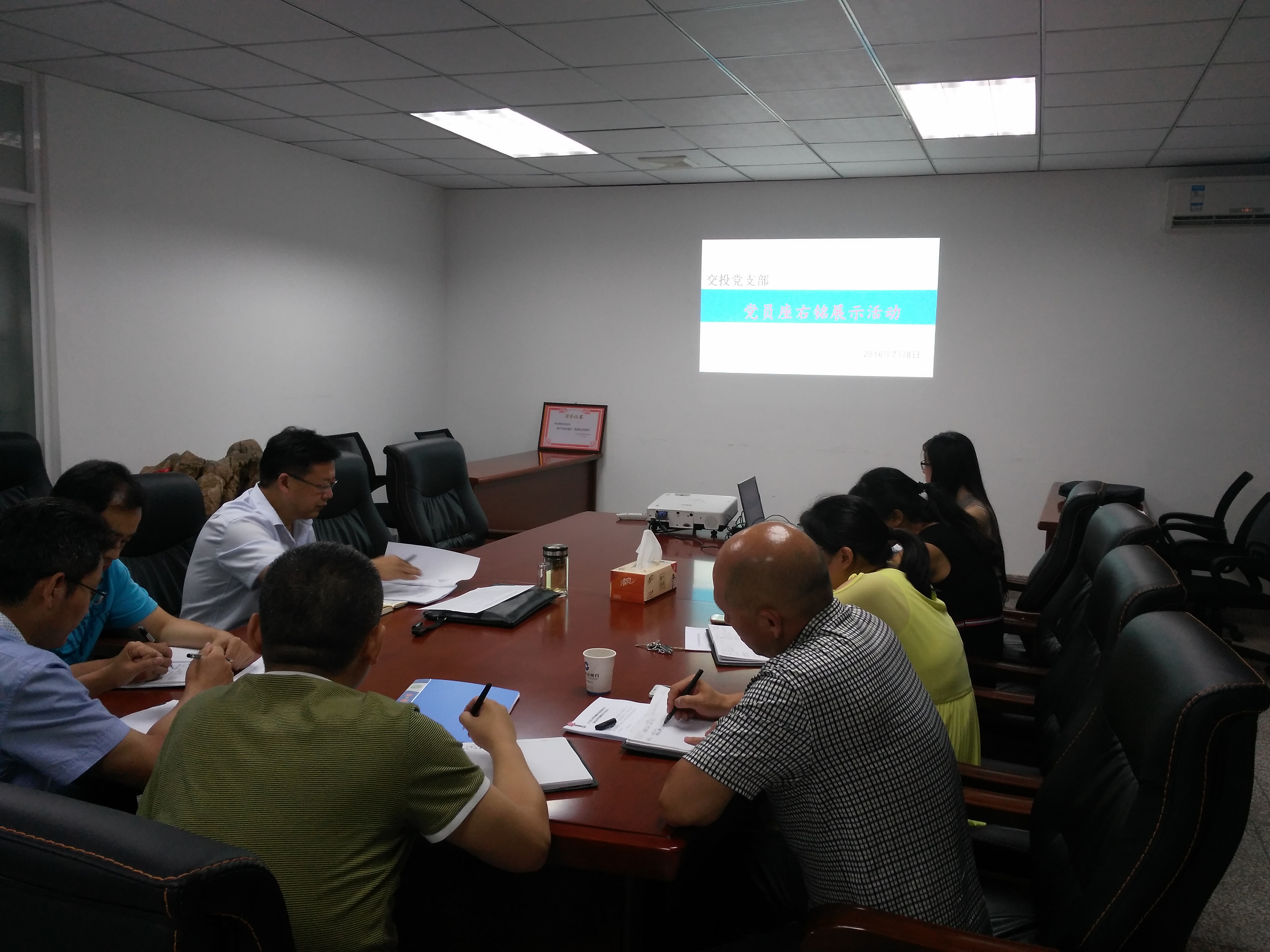 7月10日上午,市交投党支部组织支部全体党员在交投会议室开展“党员座右铭展示”活动。活动指出,党员座右铭是党员同志保持清正廉洁的名言警句,是每个共产动员为社会主义事业不断奋斗的不竭动力。交投党员同志要时刻将自己的座右铭记在心上,实践到行动中去。