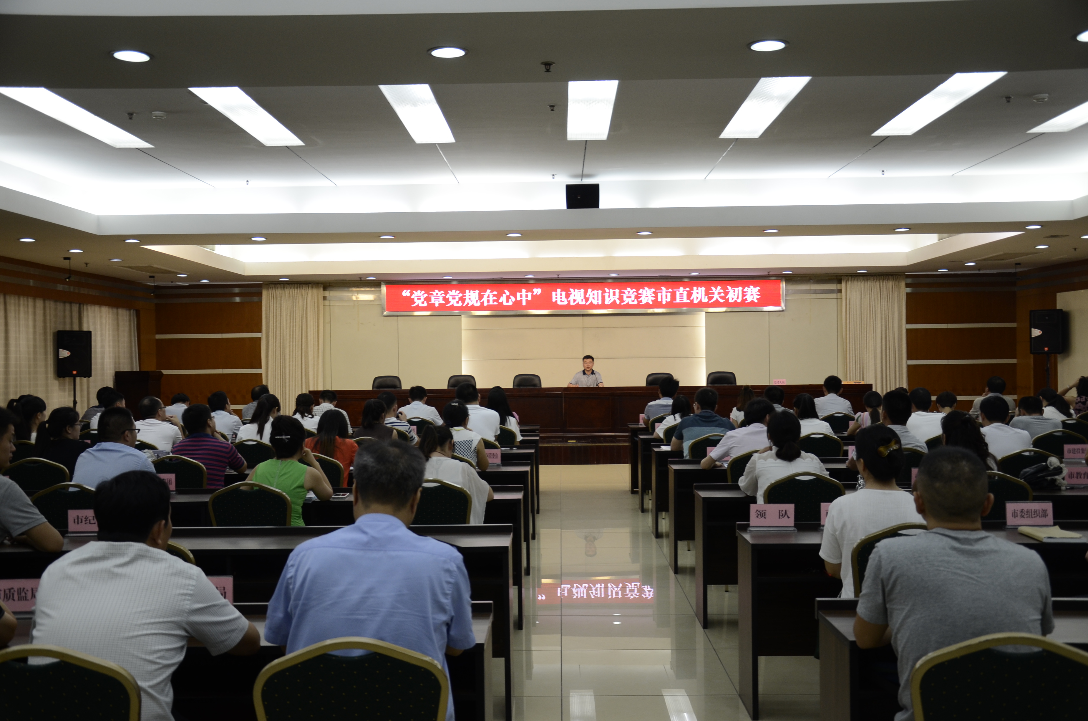 4月15日上午9时30分,在淮北市市政府三楼会议室,市建投集团代表队参加了市直机关“党章党规在心中”电视知识竞赛初赛,赛后比赛队员纷纷表示通过这次比赛,收获了很多,提升了自身的党性修为。准备阶段参赛队员利用工作之余反复认真学习《中国共产党章程》、《中国共产党》、《中国共产党纪律处分条例》和习近平总书记系列重要讲话,并在比赛前一天脱产重点学习了习近平总书记“七一”重要讲话精神。