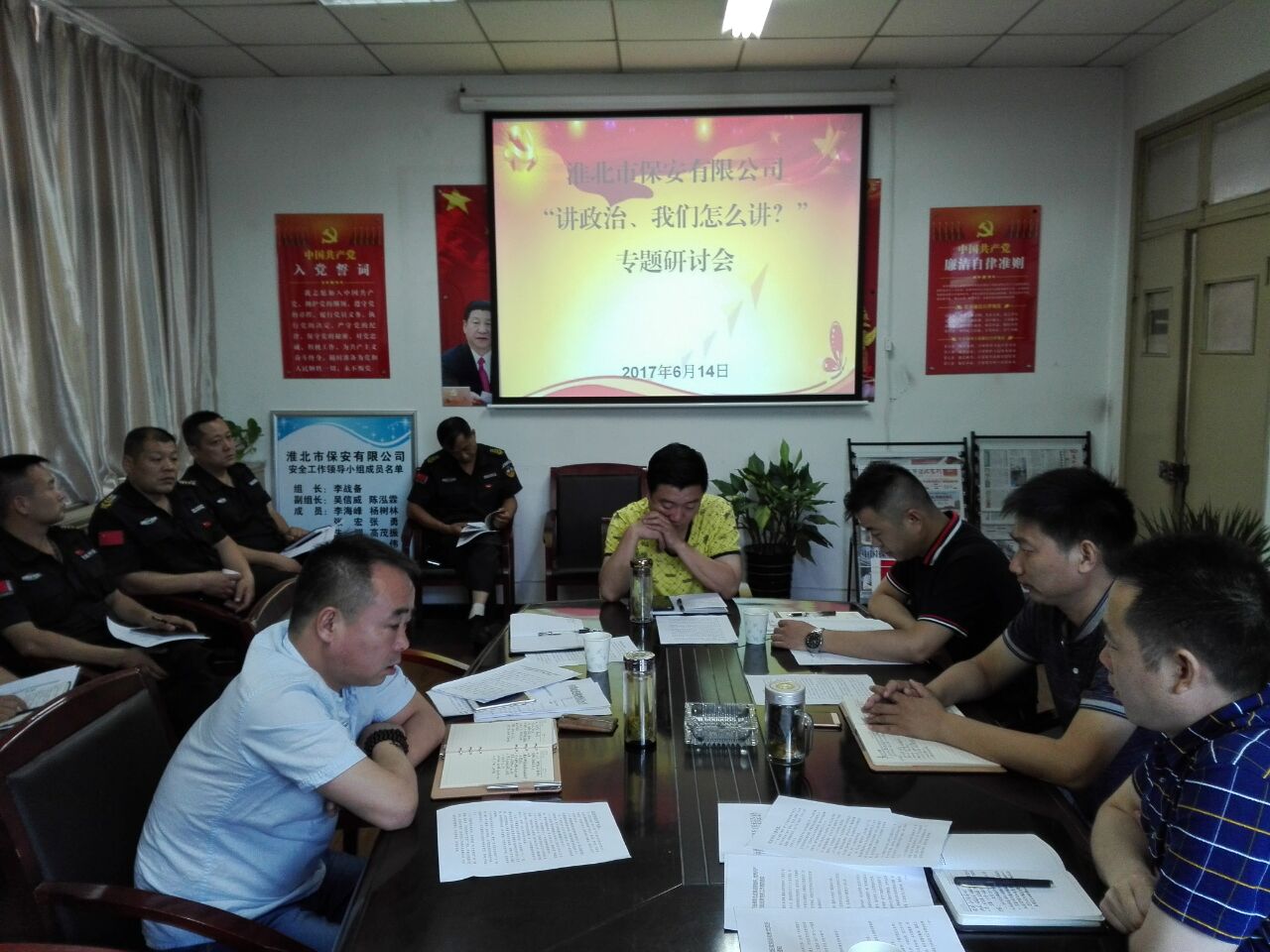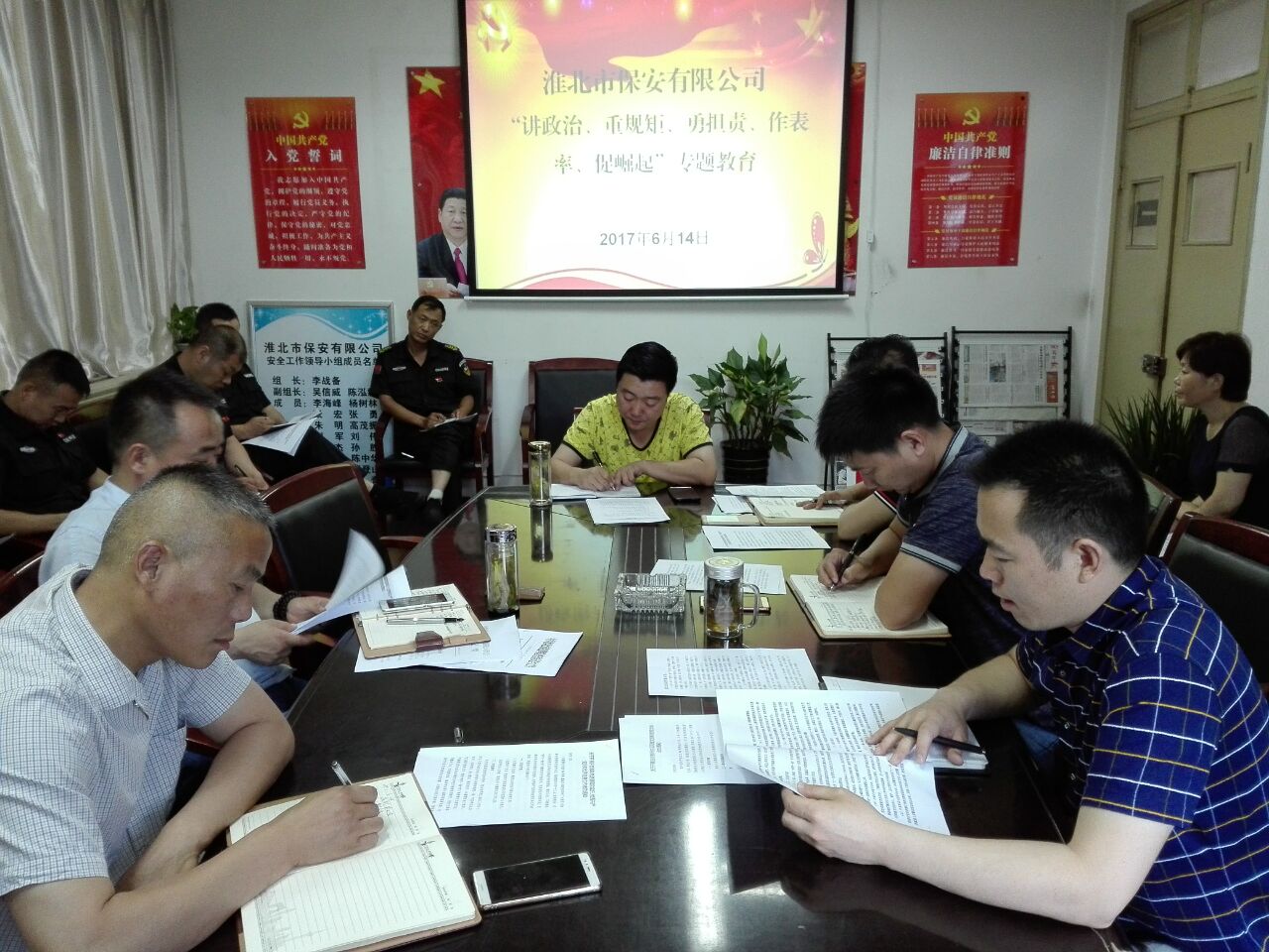 6月14日,按照“两学一做”学习教育活动安排部署,保安公司党支部组织党员开展“讲政治、重规矩、勇担责、作表率、促崛起”专题教育活动。会议由支部书记李战备同志主持,支部成员、党员代表共计22人参加会议并做交流发言。
